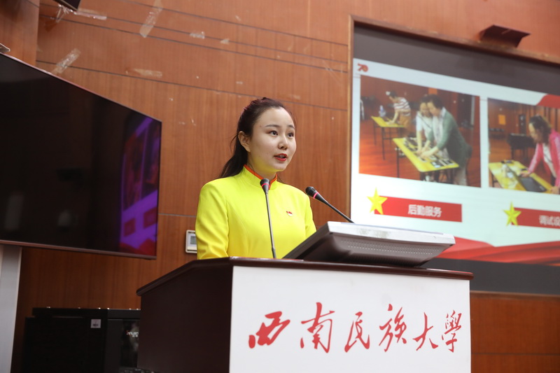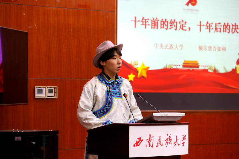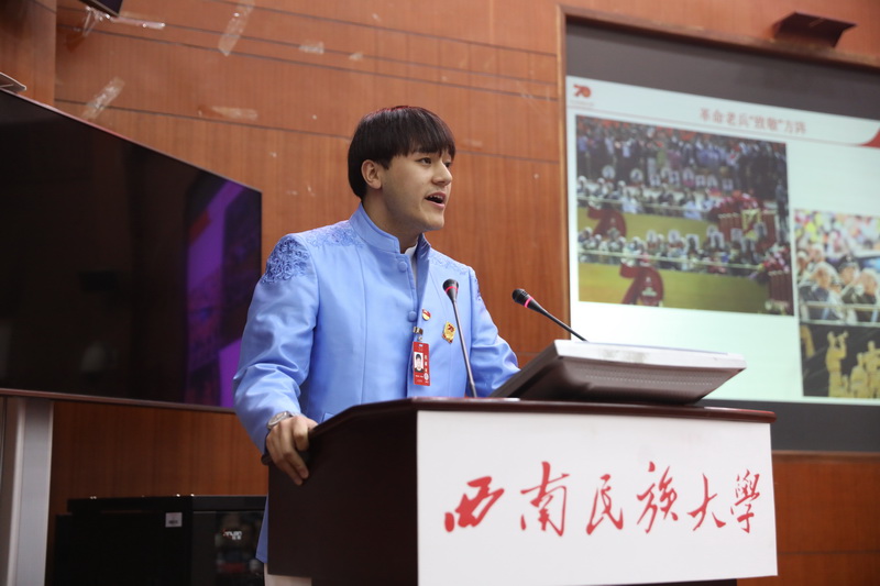“我对伊力尔江•哈力克同学的宣讲印象很深刻。我觉得他很优秀,我们年龄相差并不大,但是他已经做了那么多事。包括他讲到的59岁的艾力肯老师在做完肾结石手术第二天就继续投入到庆祝活动训练中去。孙丹丹同学讲到的唱歌时一连站十几个小时,为了避免上厕所给训练带来的不便,她们宁愿不喝水,在整个训练过程中不曾懈怠过一秒。他们一直在努力,在不断追求卓越。对我来说,最重要的是要做好自己,走好每一步,向他们看齐,慢慢向更加优秀的自己靠近。”宣讲会结束后,西南民族大学化学与环境保护工程学院大一学生马攀林(土家族)感慨地说。