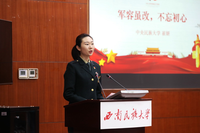 西南民族大学电气信息工程学院大二学生梁婧雅说道:“我对崔妍同学讲的她和阅兵的故事特别有感慨。我的父亲也是一名退伍军人,我高考时想考军校,但由于视力不达标而留下遗憾。我很羡慕崔妍,她的家国情怀、赤诚之心感染了我。我们每一个青年都应该从我做起,有一分光、发一分热,国家有这样的青年,民族复兴就一定会实现!”