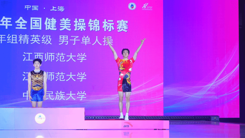 在男子单人操项目中,我校队员以"武林风"为主题,动作行云流水,举重若轻。高难度的技巧在他演绎下显得轻松自如,流畅的肢体语言配合动感音乐,将武术的飘逸与健美操的力量完美结合,最终以潇洒的表现获得季军!
