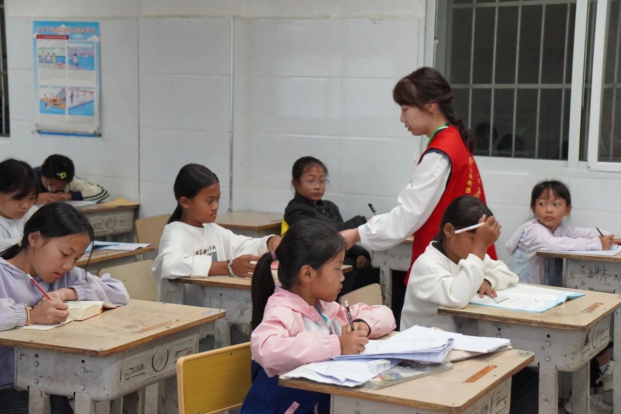 7月23日,大学生志愿者们带来了涵盖体育、道德与法治、科普等六类高素质、多元化的课程,知识的清泉在重峦间流淌,孩子们眼眸深处透露出求知的渴望。翌日,龙陵县团委书记赵瑶、龙新乡政府组织办委员自秋艳一行专程赴实践地探望指导。