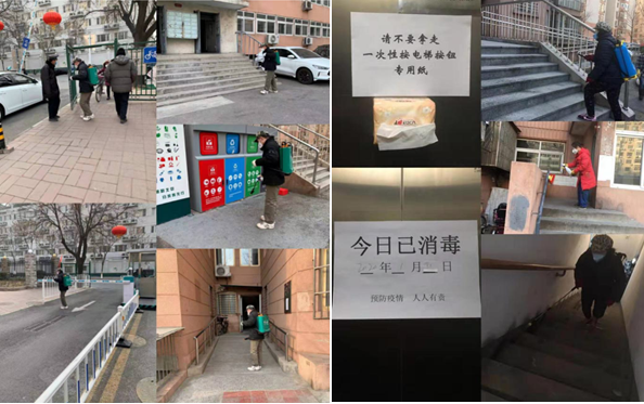 民大社区工作者、党员们、物业人员、保安、志愿者坚守防控服务岗位