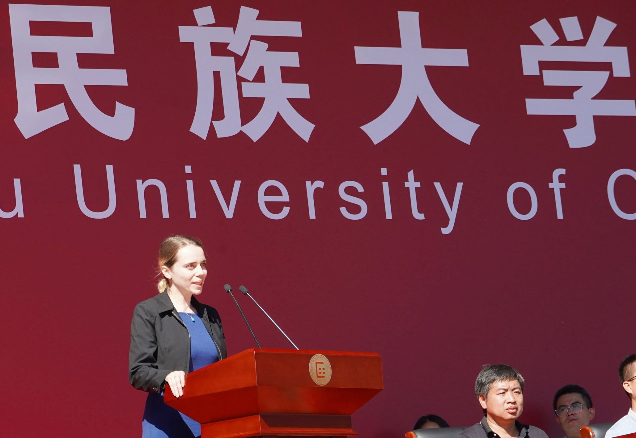 留学生代表、法学院法国籍2025级硕士研究生安娜结合童年中国记忆与四载中法教育合作经历,表达了对中国文化及深耕中法文化遗产保护法律的浓厚兴趣。她希望各国新同学珍惜民大学习机会,让友谊在心底抽芽,让人类命运共同体向未来铺展。