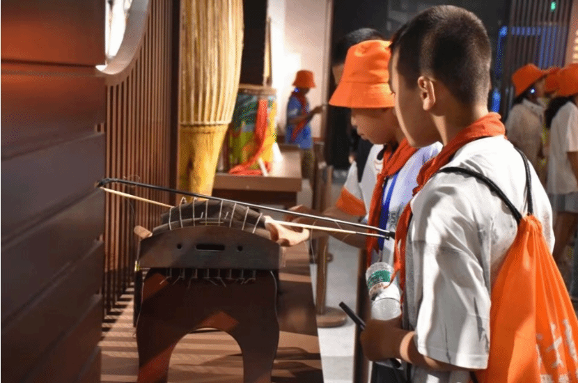 7月18日,122名来自甘肃甘南自治州合作市藏族小学青少年研学团的师生来到民族博物馆内,民族韵味在展厅间流淌。马头琴拉弯塞北的月亮,独弦琴钓起南海的星波,羌笛拂过杨柳的轻愁,筚篥唤醒陶埙的沉睡——丝绸古道上,五十六种韵律正酿成同一首滚烫的脉搏。互动间,校史的脉络逐渐清晰,服饰与乐器的魅力化作千百年来各族人民休戚与共的深情,让传承文化的责任感在同学们心中扎根。
