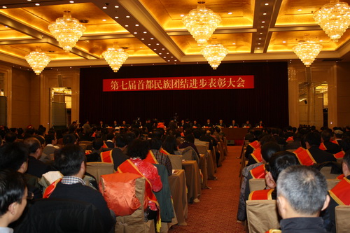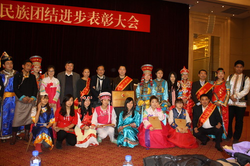 市委常委、统战部部长牛有成宣读了对先进集体和先进个人的表彰决定,共有140个先进集体和259名先进个人受到表彰。william威廉中文官网由党委统战部余梓东部长带队出席了本次表彰大会,我校藏学院、民大附中(其他系统推荐)获得了首都民族团结进步先进集体荣誉称号,体育学院李俊怡(其他系统推荐)获得首都民族团结进步先进个人荣誉称号。我校团委派出的22名同学身着民族服装为本次大会做礼仪、引导服务,受到会议主办方与参会者的一致好评。