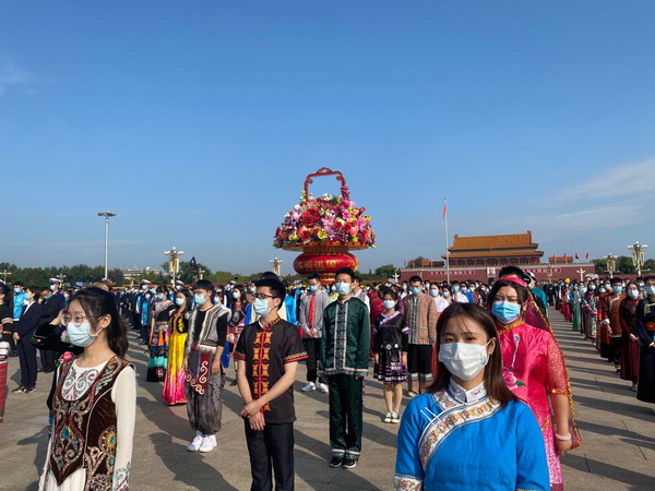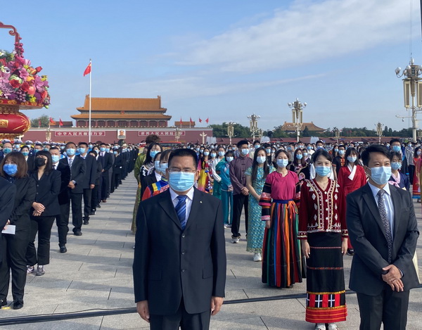 新闻网讯 9月30日,天安门广场隆重举行烈士纪念日向人民英雄纪念碑敬献花篮仪式。习近平等党和国家领导人同各界代表一起出席仪式,向烈士致敬,为英雄献礼。我校各族师生代表身着民族盛装,在校党委副书记、副校长李计勇,校团委书记樊博等的带领下参与此次活动。