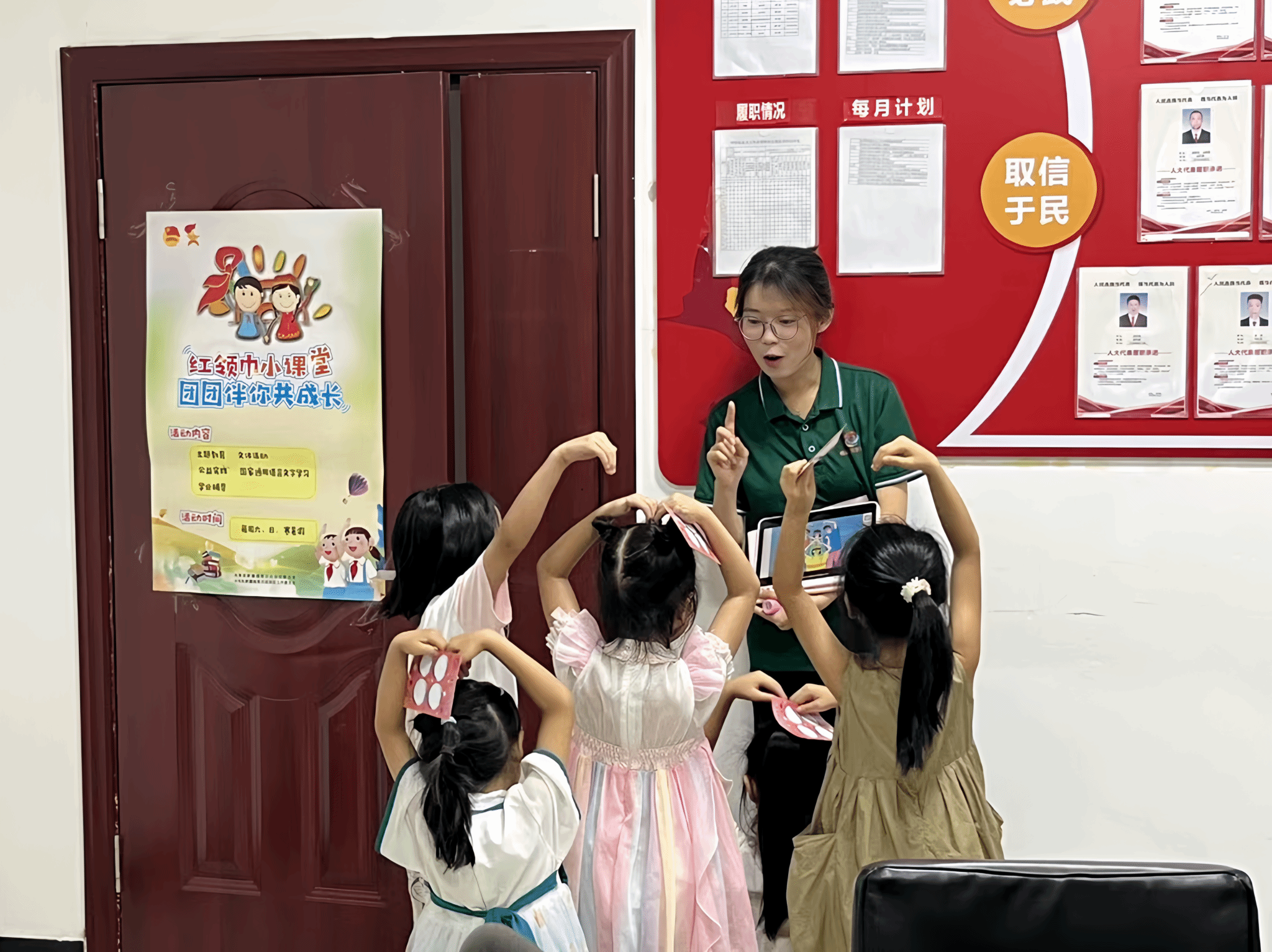 服务队在新疆呼图壁县熙景社区组织“近音词汇大辨析”游戏