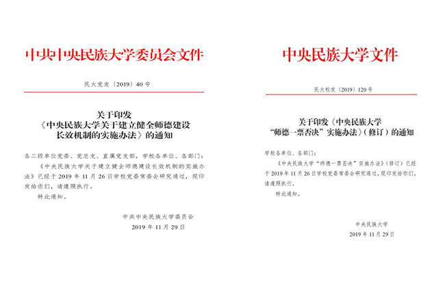 习近平总书记强调,坚持把教师队伍建设作为基础工作。学校党委始终把师德师风作为评价教师队伍素质的第一标准,始终把师德师风建设作为落实立德树人任务、坚持为党育人为国育才的内在要求,引导广大教师以德立身、以德立学、以德施教、以德育德,争做新时代“四有”好老师和“四个引路人”,力争在民大校园里涌现出更多传承大师治学精神的一流学者,为国家战略和民族地区经济社会发展服务奉献、做出一流贡献的教师,发扬开拓创新精神、展现新时代一流风采的教师,坚守初心使命、发挥榜样力量、做一流示范的教师。
