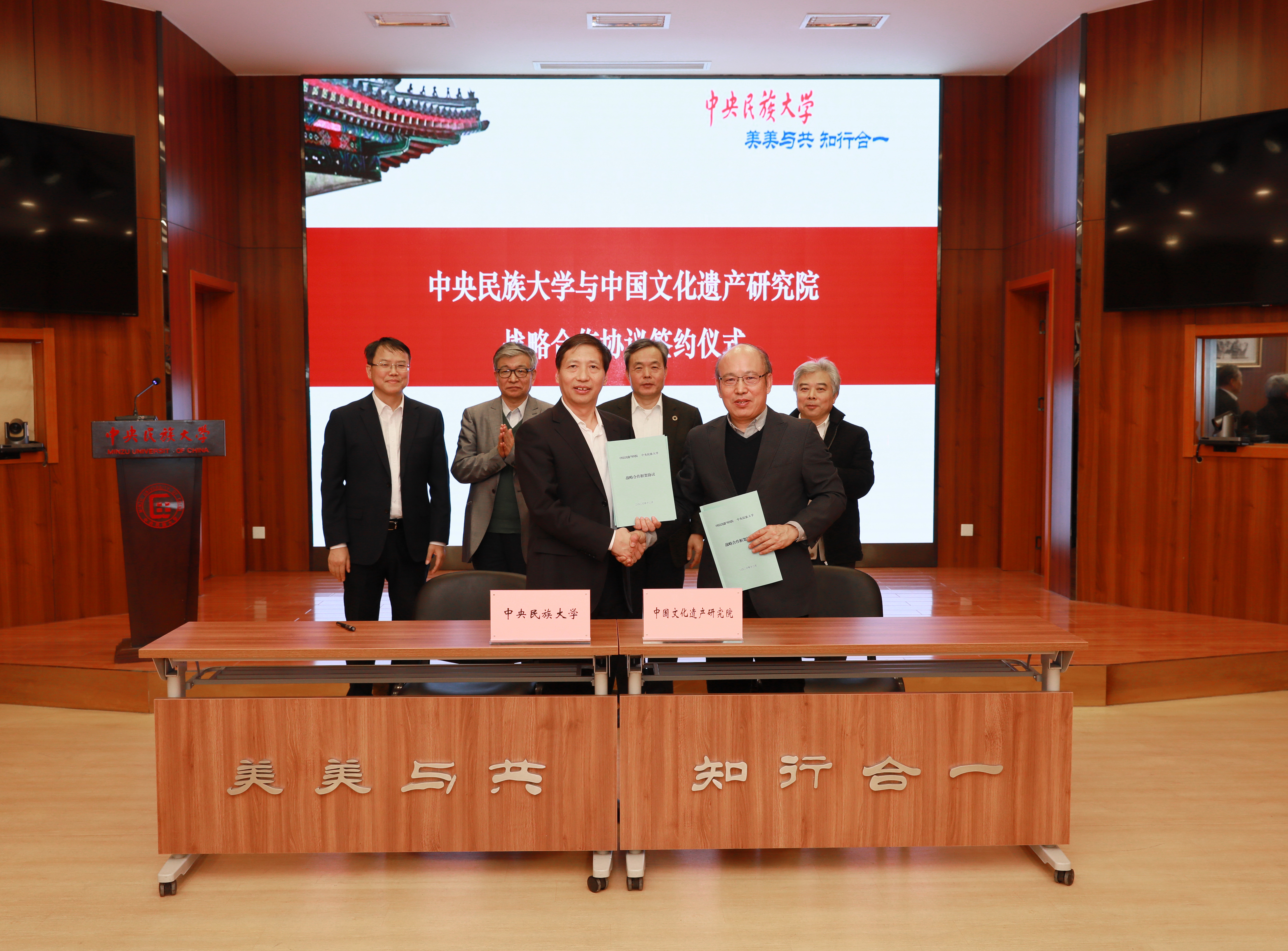 中国文化遗产研究院、中国国家博物馆、故宫博物院、中科院古脊椎动物与古人类研究所、北京大学、中国人民大学、首都师范大学等有关研究人员和我校相关职能部门、民族学与社会学学院、铸牢中华民族共同体意识研究基地等人员参加签约仪式。