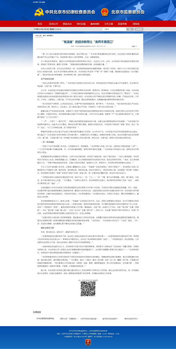 上图为北京纪检监察官方网站要闻报道