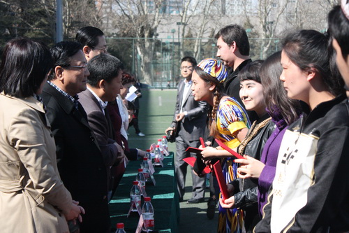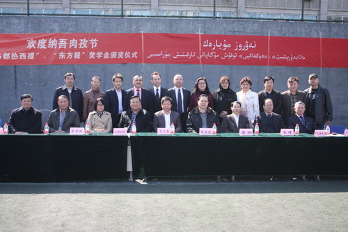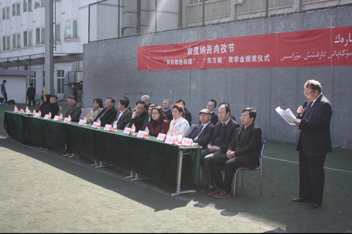 马文喜向师生们表达了节日的问候,并对学生们提出了殷切的希望。学生处副处长阿力木老师宣读了获得东方毅和阿布都热西提奖学金的名单,各位嘉宾为获奖学生颁发了荣誉证书。颁奖仪式结束后,由我校维吾尔族学生组成的足球联队与北京体育大学维吾尔族学生组成的足球联队进行了一场友谊赛,同学们在比赛中,增进了友谊,锻炼了身体。本次庆祝活动也在快乐的氛围下圆满落幕。