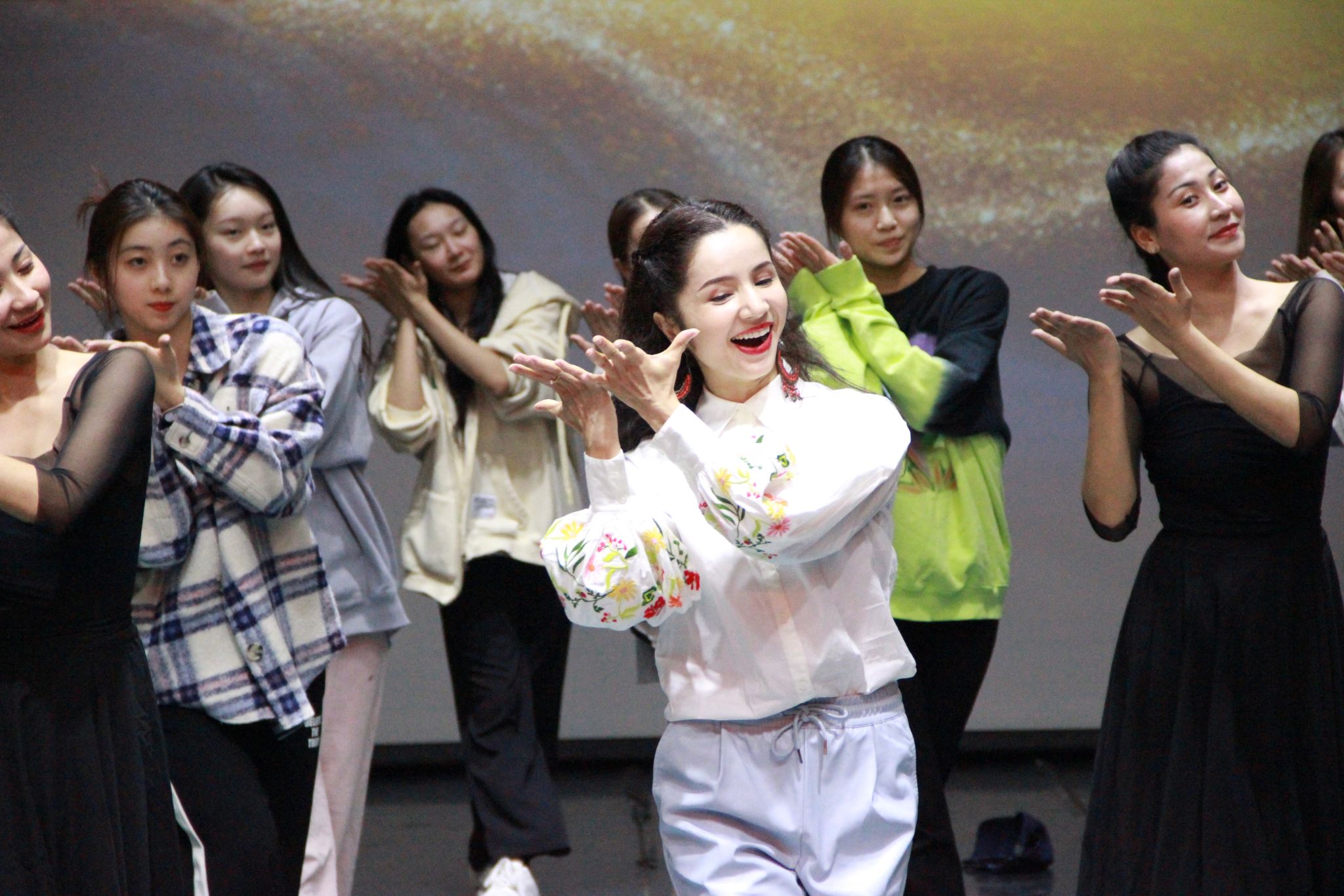 “国家之魂,文以化之,文以铸之”,william威廉中文官网舞蹈学院立足专业建设将中华文化与舞蹈课程深度融合,开设“以‘舞’道中华”思政课,青年舞蹈家、舞蹈学院教授古丽米娜以其领衔主演的舞剧《五星出东方》为背景,与同学们共同领略了《一锦千年:“五星出东方利中国”里的民族交融史》;实践剧场课程中,古丽米娜老师教授了舞剧中具有传统文化内涵的舞蹈片段《灯舞》,将舞蹈课程的思政作用内化于心、外化于行,让同学们感受到美丽又多彩的中华传统文化之美。