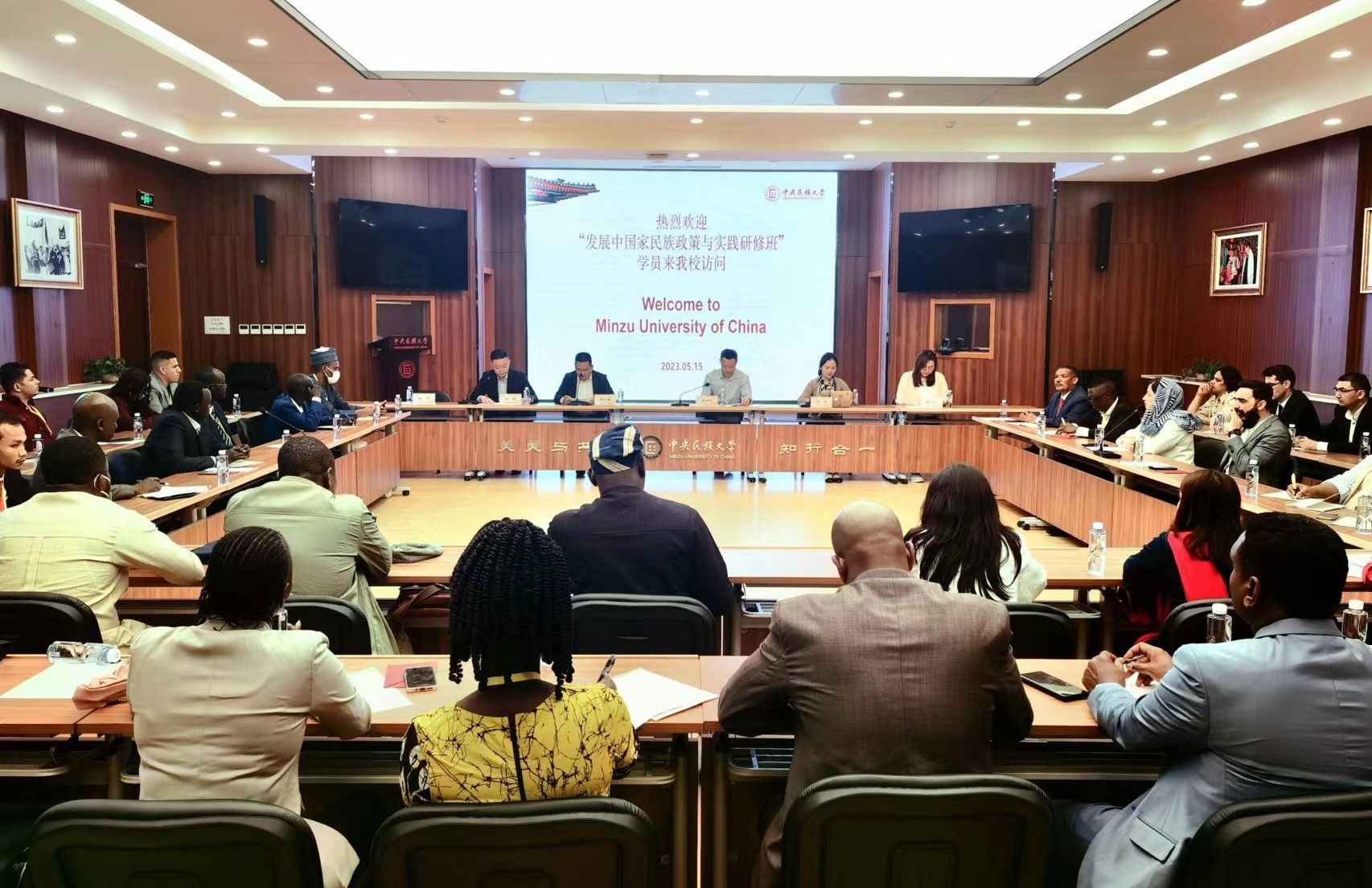 新闻网讯 5月15日,由商务部国际商务官员研修学院承办、国家民委国际交流司协办的2023年援外培训项目“发展中国家民族政策与实践研修班”学员一行34人来我校参观座谈。本期研修班学员由来自尼泊尔、加纳、委内瑞拉、斯里兰卡、南苏丹、伊拉克、塞拉利昂、尼日利亚、埃塞俄比亚、毛里求斯、乌兹别克斯坦、苏丹、柬埔寨等13个发展中国家民族工作相关部门的司处级官员和研究机构的专家、学者组成。我校党委副书记、副校长李计勇在知行堂与学员就中国民族高等教育体系、少数民族人才培养等主题进行座谈交流,国家民委国际交流司副司长李焕才出席座谈会。