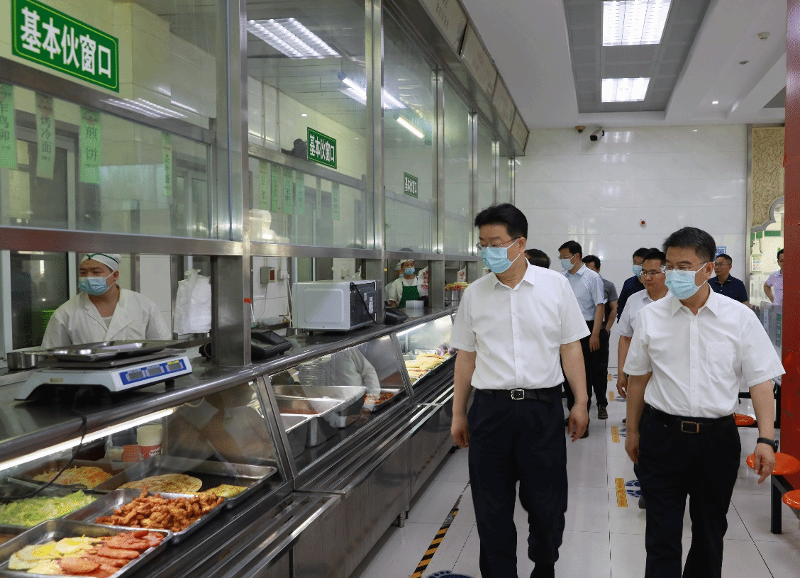 游钧一行先后来到学校东门、理工楼负一层、文华楼一层、学生第四餐厅、学生第三餐厅、健康驿站等场所,实地考察了师生工作学习生活环境,听取相关情况汇报,详细了解校门出入管理、危化药品存放库使用、平安校园管理服务、餐厅安全生产及就餐环境、健康驿站管理使用等情况。