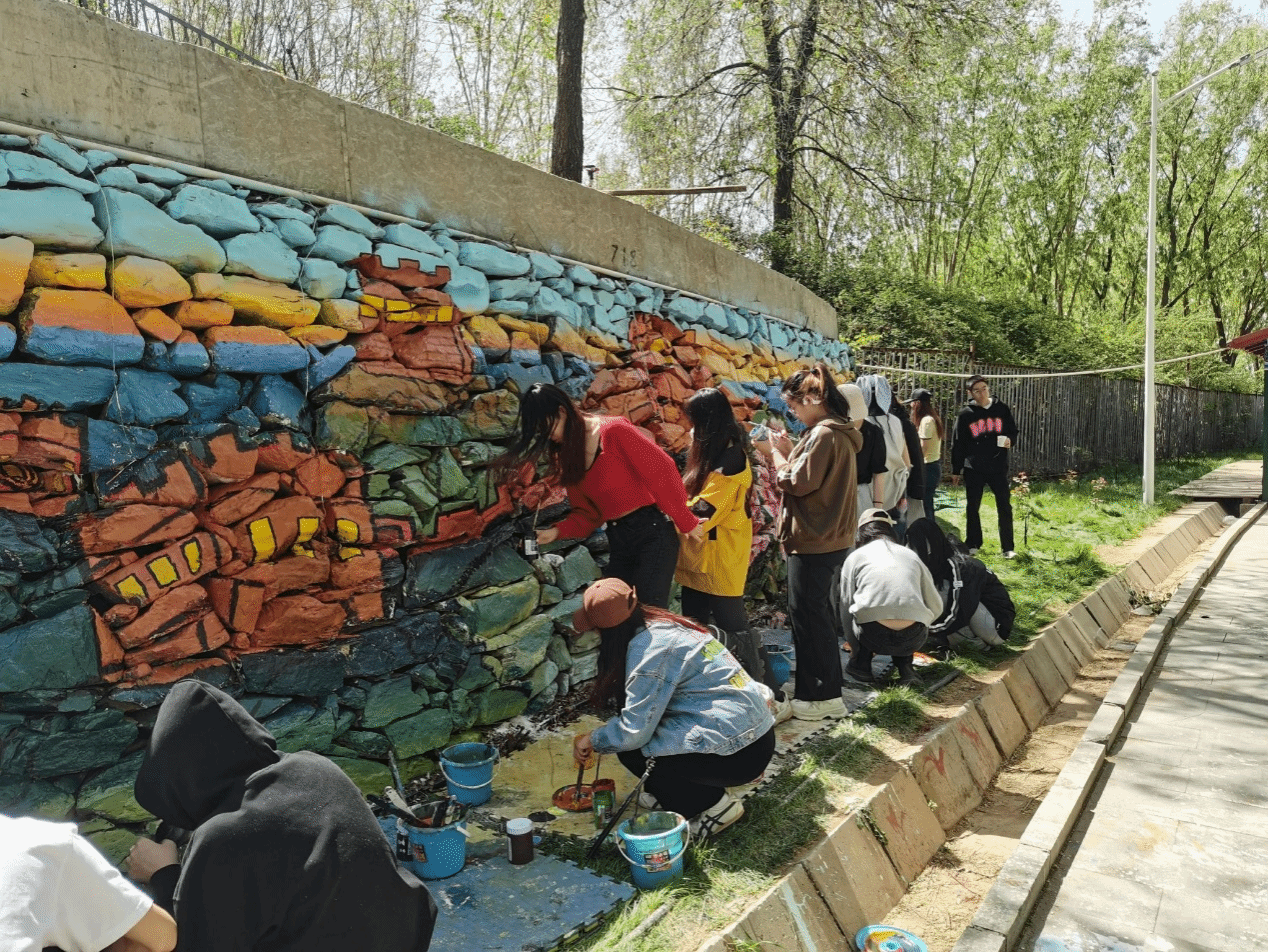 ▲美术学院百名师生为丰台区王佐镇魏各庄村石头墙绘就乡村振兴画卷