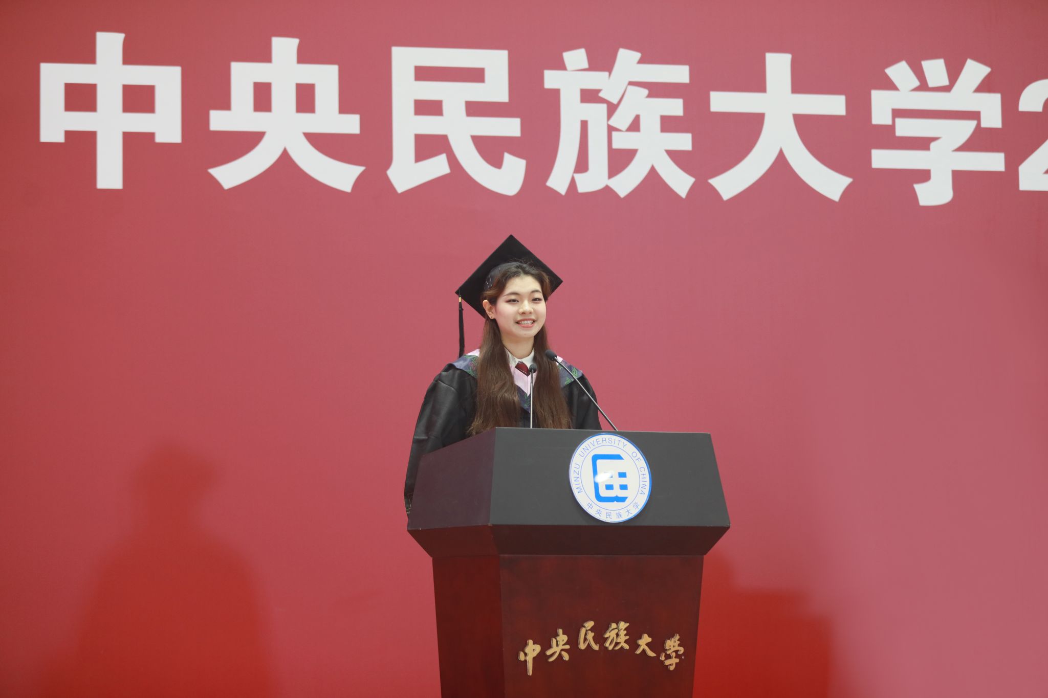 “这声‘毕业了’,是对四年前的自己选择民大的无比肯定,是对我们即将开启人生下一段旅程的鼓励。”本科生毕业生代表、外国语学院翻译专业本科毕业生李英源,道出了所有毕业生的心里话,道出了“民大给予的各美其美、拥抱未知、包容多样的勇气,支撑着我们用脚步丈量祖国大地,一步步迈向自己未来”的底气。