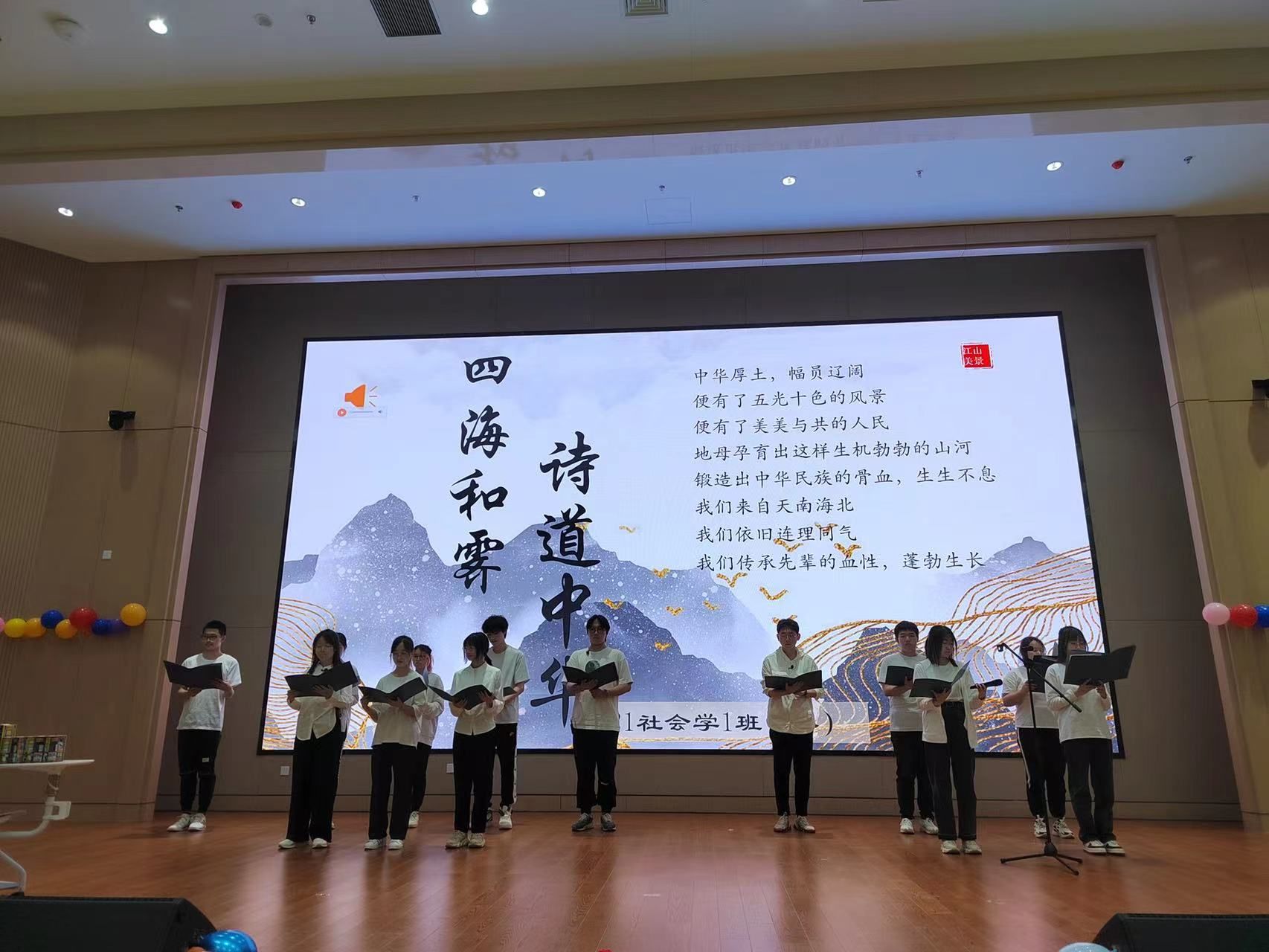 伴随着《光荣啊!中国共青团》的激昂旋律,学院“2023年五四青春诗会”在丰台校区明德楼报告厅落幕。本届诗会以“青春诗咏二十大,石榴同心道中华”为主题,紧扣主题教育,分为“诗诵国家”“诗道中华”“诗咏民社”“诗赞青春”四个篇章,综合运用朗诵、舞台剧、合唱、舞蹈、器乐演奏等形式,覆盖21个党团班,近600余名学子积极参与,自觉做弘扬五四爱国主义精神、铸牢中华民族共同体意识的践行者,既是一次生动的思想政治教育,更是学院深入开展主题教育以来的阶段性成果展示。
