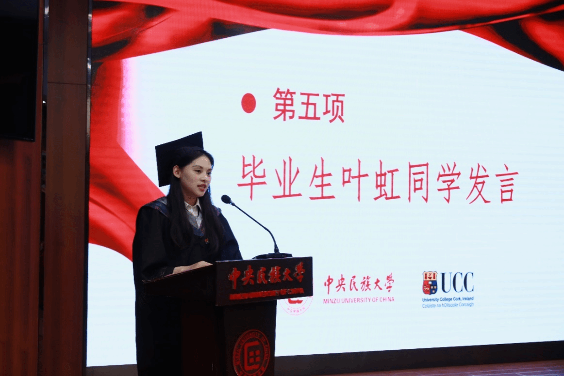 2019级中外合作办学项目学生叶虹作为毕业生代表发言,感恩老师,感恩学校,感恩同学。