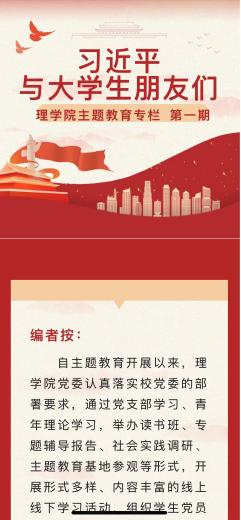 主题教育期间,学院以丰富的教育形式,教育引导干部师生筑牢理想信念、坚守初心使命,举办“红色基因我传承读书会”“我为党旗添光彩”“追寻红色足迹”“追寻红色足迹”等系列活动、开设“习近平与大学生朋友们”“主题教育进行时”等宣传专栏,不断激发线上线下各类宣传平台,切实增强主题教育的吸引力和感染力,全院掀起深入开展主题教育的新热潮。