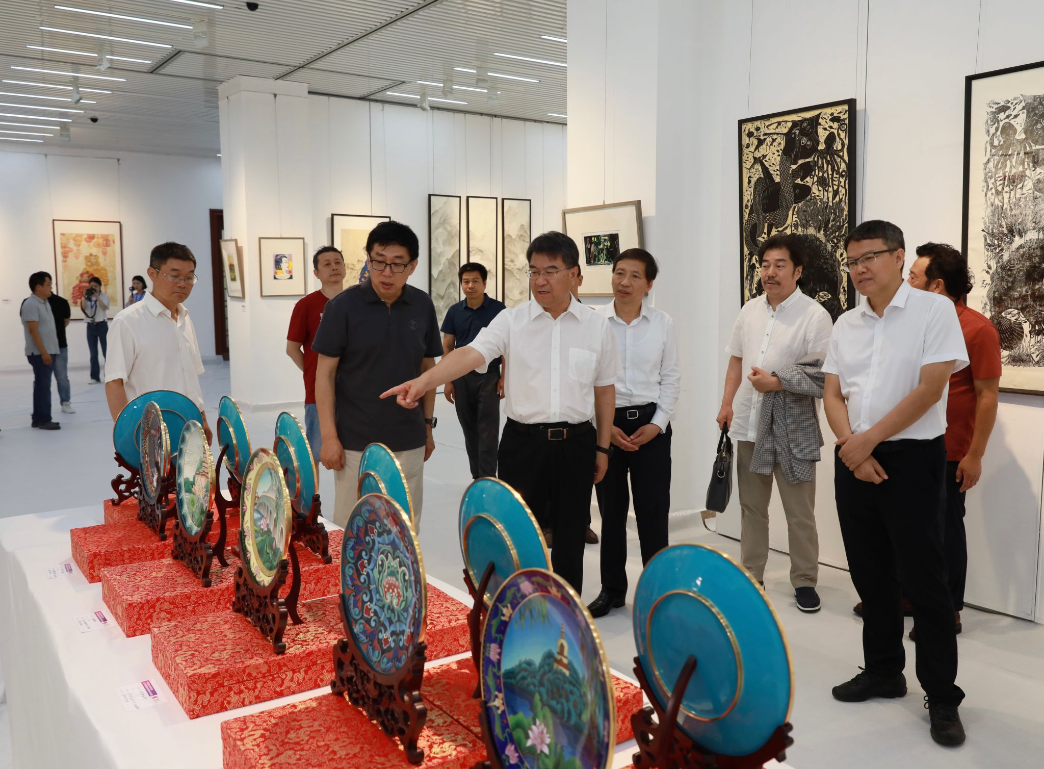 在看到最具师范特色、以北京非遗珐琅彩技术创作建党百年系列挂盘时,张京泽驻足良久,指出,毕业展是学院一年一度人才培养的重要成果,体现了美术学院在服务文化强国战略、服务首都文化中心建设方面做出突出成绩。他要求,美术学院要全面深入学习贯彻落实习近平总书记在文化传承发展座谈会上的讲话精神,坚持立德树人,坚持价值引领,积极回应时代关切与社会需求,用好红色资源,传承红色基因,弘扬红色文化,大力培养堪当民族复兴重任的时代新人,践行为党育人、为国育才神圣使命。