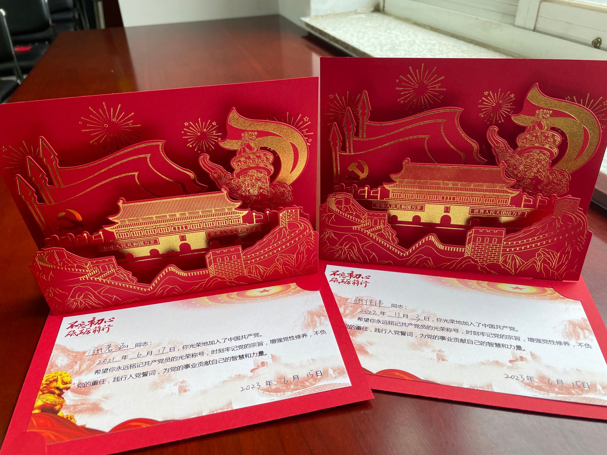 毕业生党员全员学。6月20日,学院组织开展“传承建党精神,建功新时代”2023届毕业生党员主题教育,为97名全体毕业生党员上好大学“最后一堂党课”。活动开始前,学院在每位毕业生党员的座位上准备了“临别礼”,一枚党徽、一本党章、一张政治生日卡,希望每一位毕业生党员始终与党同心、跟党奋斗。通过重温入党誓词,全体毕业生党员铭记党员的责任和荣耀,将党的二十大精神内化于心、外化于行。