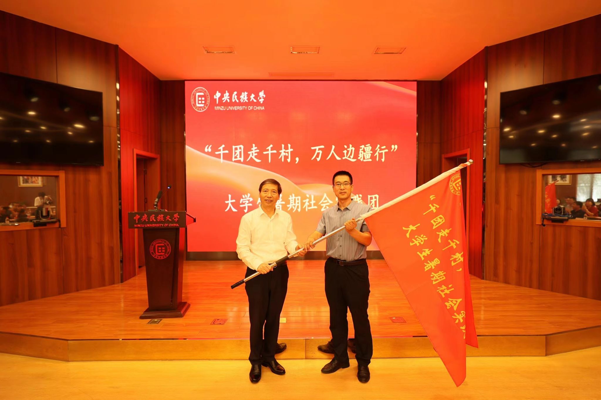 新闻网讯 7月7日上午,学校2023年“千团走千村,万人边疆行”暑期社会实践专项计划启动仪式在海淀校区知行堂举行。党委副书记、校长郭广生出席启动仪式并为实践团队授旗。党委常委、副校长杨慕云参加启动仪式。60支参加“千团走千村,万人边疆行”暑期社会实践专项计划团队响应号召,整装待发,即将踏上奔赴祖国辽阔疆域的实践之旅。