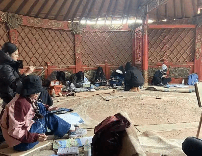 王晓欧老师带领2021级美术教育全体学生赴甘南藏族自治州夏河县拉卜楞寺写生,赴炳灵寺石窟、麦积山石窟临摹。