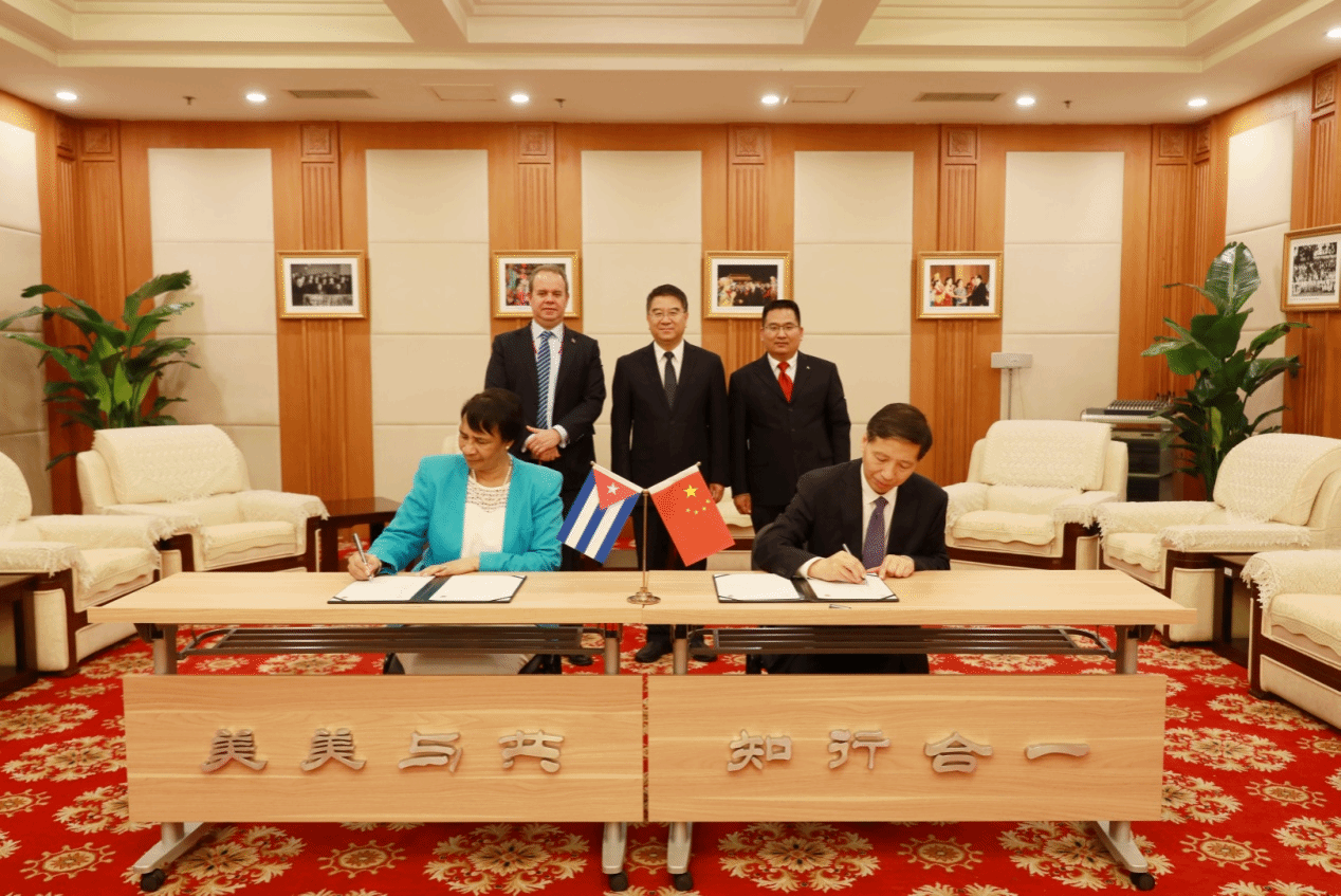 新闻网讯 7月31日下午,古巴共产党中央委员、国务委员、哈瓦那大学校长MIRIAM NICADO GARCÍA(米里亚姆·尼科多·加西亚)率团来校访问,古巴驻华使馆临时代办、副大使MARIO ALZUGARAY(马里奥·阿尔苏加雷)随行。国家民委专职委员、校党委书记张京泽会见访问团一行并见证签约,校党委副书记、校长郭广生与米里亚姆·尼科多·加西亚代表双方签署两校合作协议。